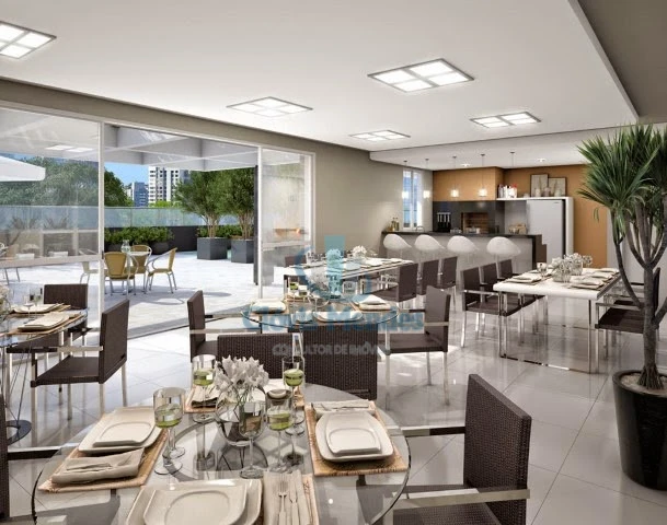 O condomínio proporciona dois espaços gourmet/salão de festas, salão de jogos, playground, brinquedoteca, piscinas adulta e infantil, academia e quadra poliesportiva.