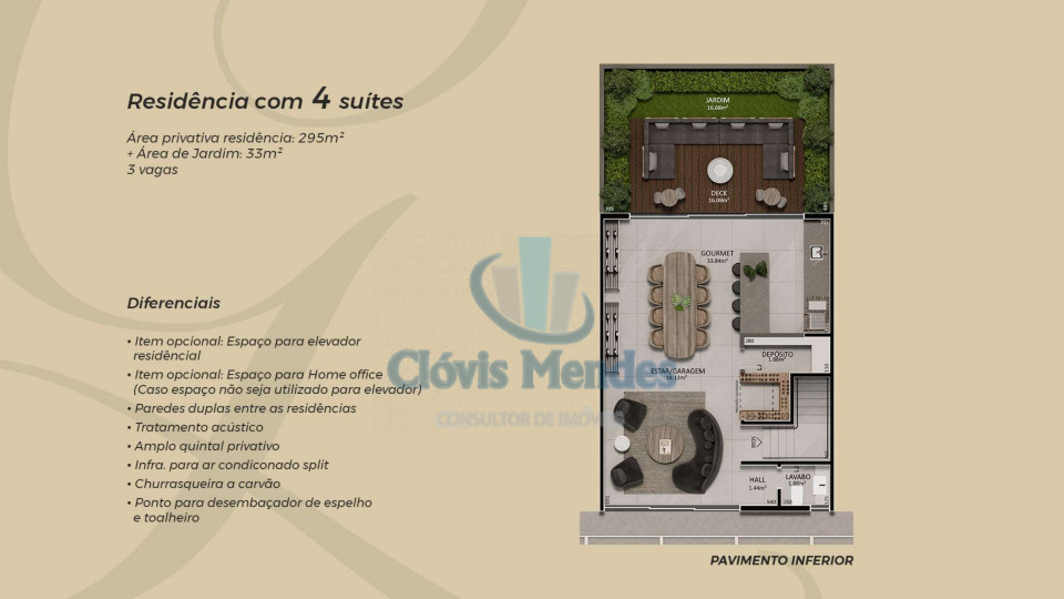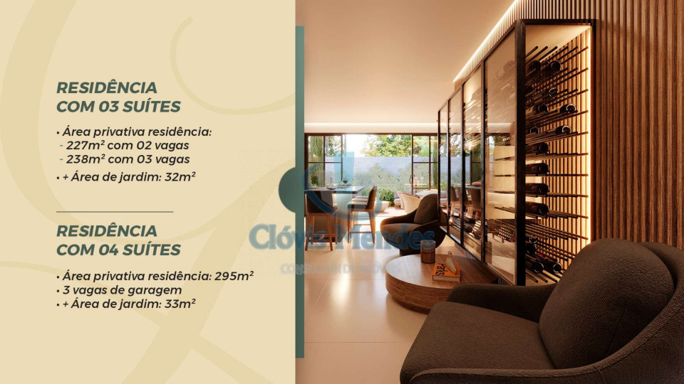 Esse empreendimento terá apenas 24 residências com metragens que variam de 237 a 295 m² de construção para uso privativo, com 3 ou 4 suítes e 2 ou 3 vagas de garagens.