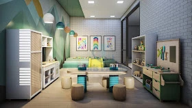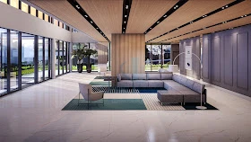 Projeto de móveis e iluminação.