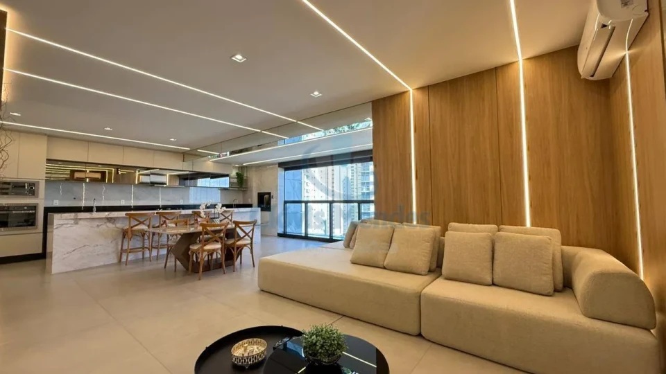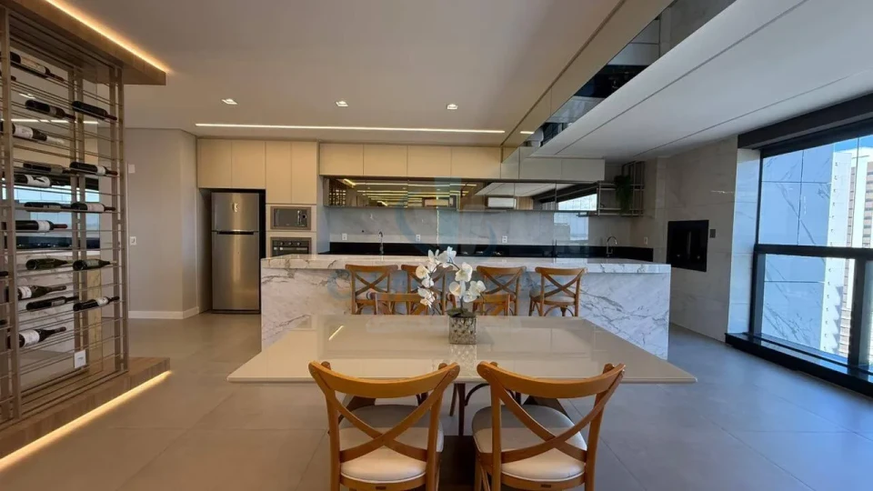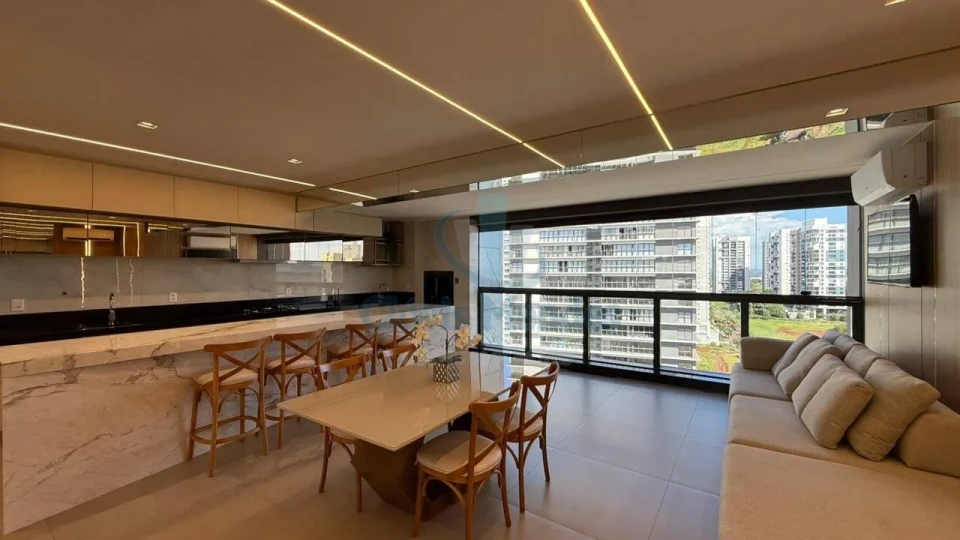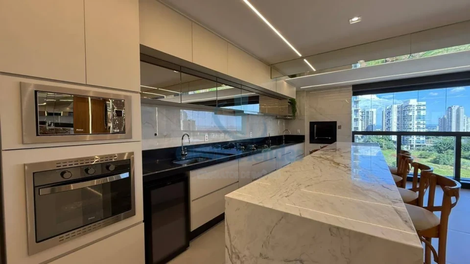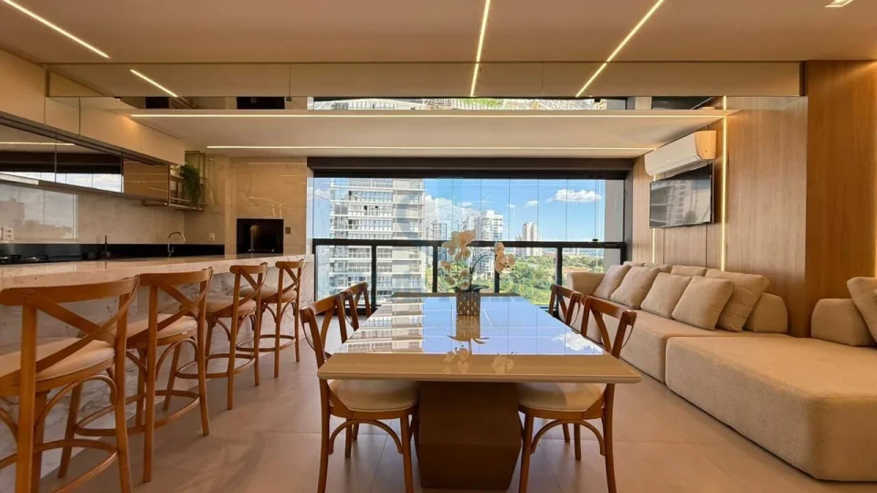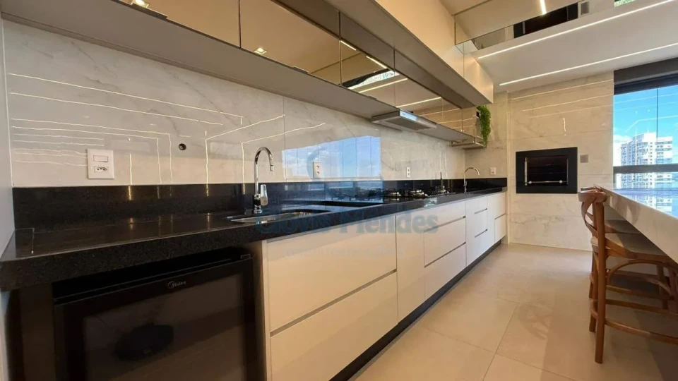 Cozinha integrada a sala e sacada gourmet