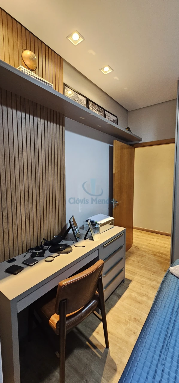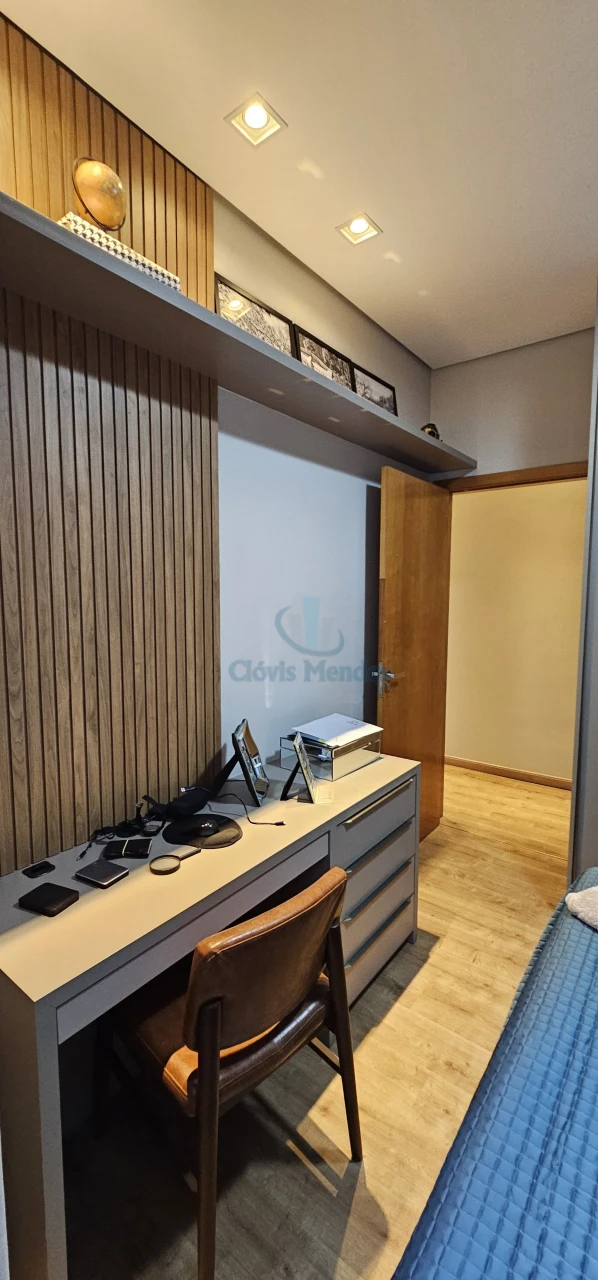 São 3 quartos, divididos em uma confortável sala TV, espaço home office, visita .